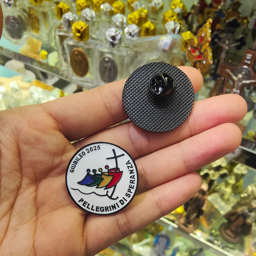 Inspirational Inscription: Embossed with “GIUBILEO 2025” and "PELLEGRINI DI SPERANZA" (Pilgrims of Hope). these badges radiate an inspiring message of hope and spiritual pilgrimage towards Christ's millennium.